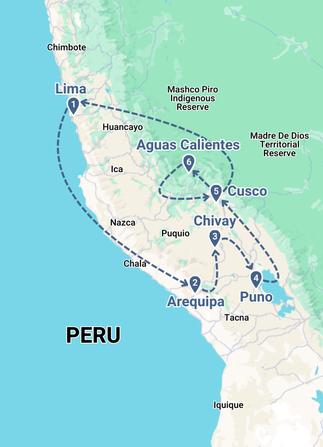 • Cities: Lima, Puno, Cusco